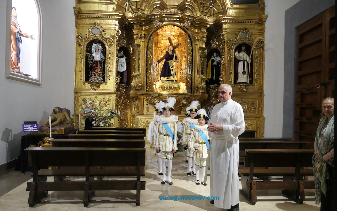La Agrupación de la Virgen de la Cofradía de Jesús Nazareno recuperó hace dos años una ancestra tradición que ha dado mucho colorido al acto que, una vez al año, llevan a cabo a su imagen titular en primavera. Se trata de 'La danza de los niños seises'.