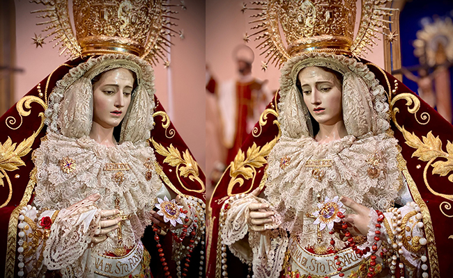 Los actos en honor a la imagen de la agrupación california se desarrollarán en la parroquia de Santa María de Gracia de sábado a lunes próximos con misas, veneración y ofrendas de flores y de alimentos, para el día 26 llevarse a cabo el 'Rosario de las antorchas'. En la foto, la talla vestida para estos días.