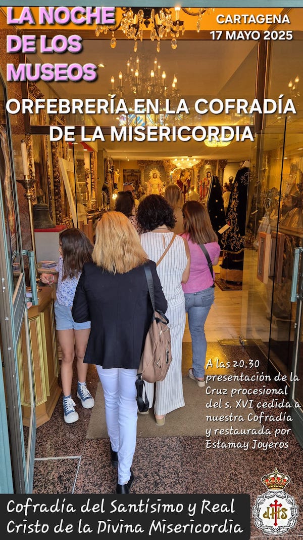 La Cofradía del Santísimo y Real Cristo de la Divina Misericordia organiza para este sábado una muestra de orfebrería de la hermandad en su capilla de la plaza de la Merced, que incluye la presentación de una cruz procesional del siglo XVI que ha sido restaurada por la empresa cartagenera Estamay Joyeros.
