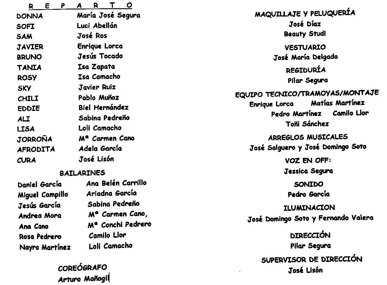 La nueva obra del musical del Grupo Independiente de Teatro Vista Alegre  ya tiene vendido las entradas para su puesta de largo de esta noche (21.30 horas) en el teatro circo de El Algar y también ha agotado más de la mitad de las de la representación de este sábado en el mismo lugar y hora. El reparto lo integran 22 personas, de los que 7 son bailarines. Dirige Pilar Segura con José Lisón como supervisor de dirección.