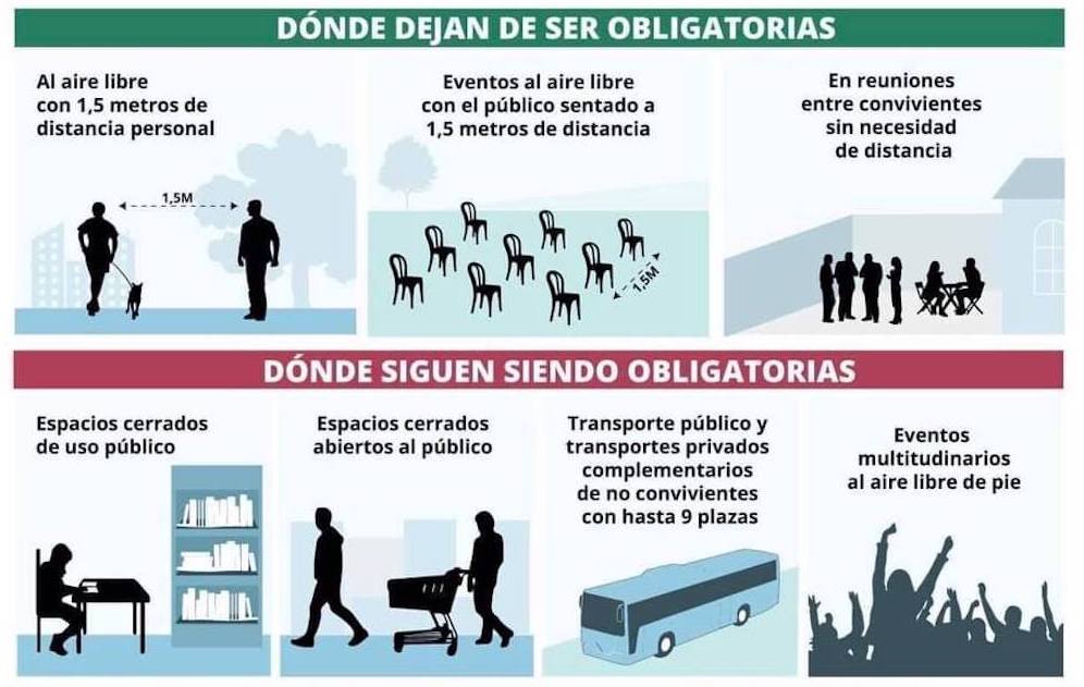 Desde hoy el uso de la mascarilla no es obligatorio en espacios abiertos siempre que se pueda mantener la distancia de seguridad sociosanitaria de metro y medio con personas no convivientes. Sin embargo, por si surgen esas ‘peligrosas’ aproximaciones, habrá que llevar un protector siempre encima para hacer uso en cualquier momento. El uso de la mascarilla en España viene desde que en marzo de 2020 irrumpió la pandemia del COVID-19, pero no fue hasta julio cuando se hizo obligatoria en España para mayores de 6 años de edad. Su uso sigue con esa obligación en interiores con personas no convivientes.