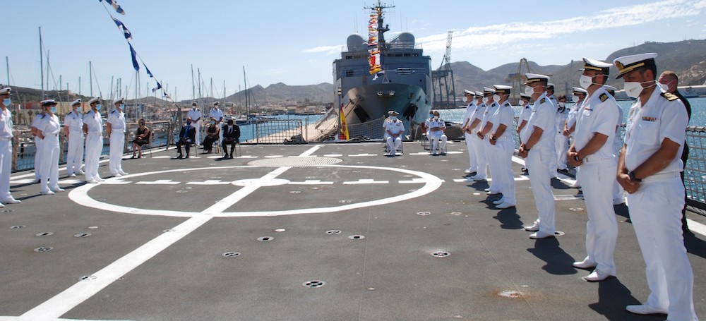 Han tenido lugar en el muelle de cruceros de Cartagena a bordo de la fragata 'Méndez Núñez' y del buque 'Rayo', respectivamente. El contralmirante español Manuel Aguirre Aldereguía y el capitán de navío español Javier Núñez de Prado Aparicio han entregado han entregado los mandos al contralmirante italiano Stefano Russo y al capitán de fragata francés Gregory Guiran.