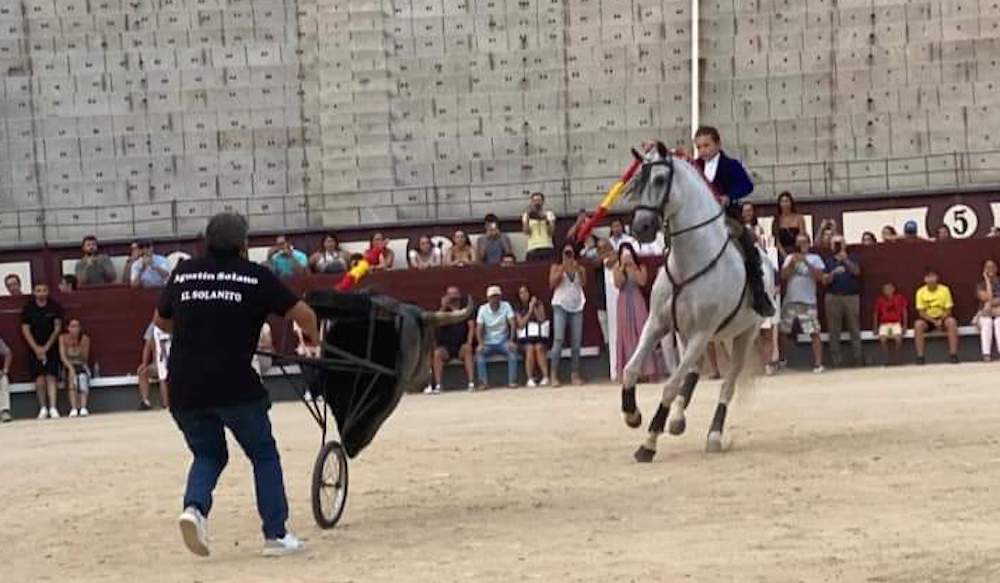 El muy joven rejoneador cartagenero, hijo de Agustín Solano, cautivó al público de la plaza de toros de Madrid con su buenhacer y desparpajo durante una exhibición de rejoneo.