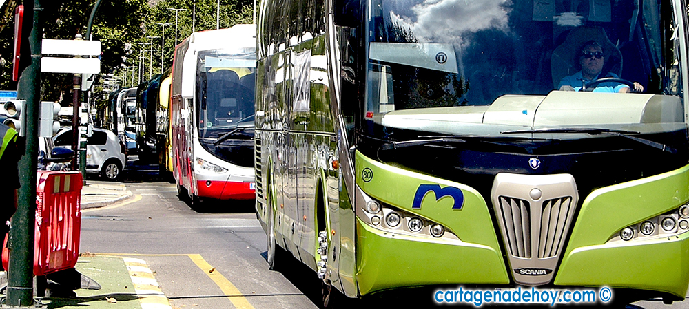 Empresas asociadas a la Federación Regional de Organizaciones y Empresas de Transporte de Murcia (Froet) han protagonizado hoy un recorrido por el centor de Cartagena, abarcando Alameda de San Antón, plaza de España, paseo de Alfonso XIII, plaza de Bastarrete, etc., con parada ante la Asamblea Regional, donde se celebraba el plenario de los diputados. Los vehículos participantes son los que hoy no tenían servicio. Cabe recordar que desde el lunes hay una huelga del sector en los servicios escolares.