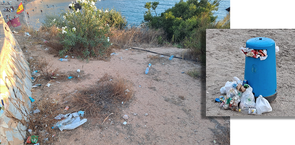 El PSOE de Cartagena ha denunciado la continua presencia de suciedad, plásticos y basuras en Cala Cortina.