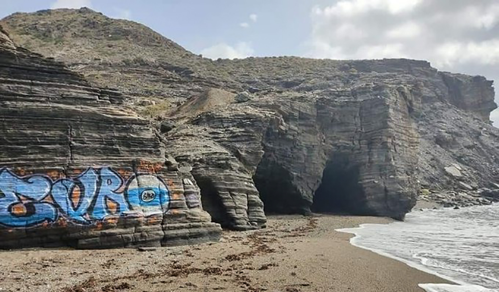 La Comunidad denunció hoy que se han producido actos vandálicos en el Parque Regional de Calblanque, Monte de las Cenizas y Peña del Águila tras descubrir la presencia de un grafiti de grandes dimensiones en una zona de acantilados rocosos de Cala Cocón.