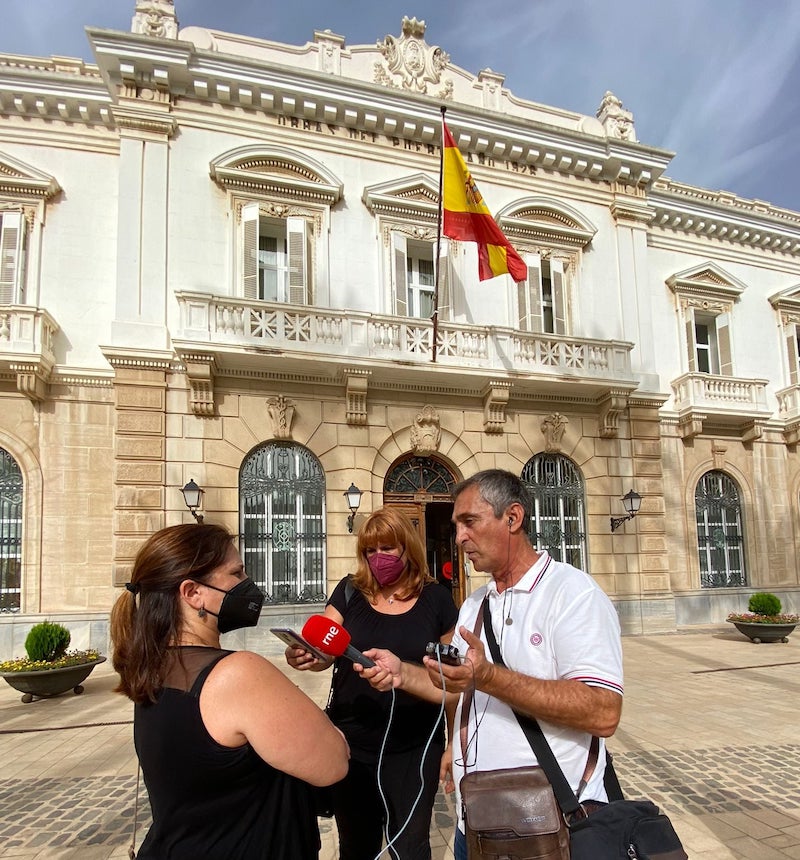 En la imagen inferior, Cristina Martínez, presidenta de Cartagena Futura, es entrevistadam por medios informativos.