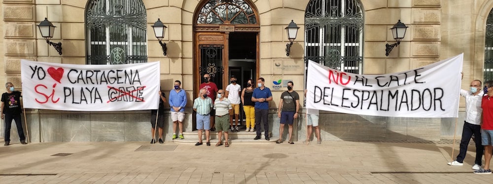 Un grupo de personas llevó a cabo ayer una concentración ante la sede de la Autoridad Portuaria de Cartagena para pedir que el futuro centro de atención para emigrantes no se ubique en El Espalmador, abogando porque ese espacio se reserve para una futura playa. Además, a través de change.org hay una campaña de recogida de firmas que acumula setecientas firmas.