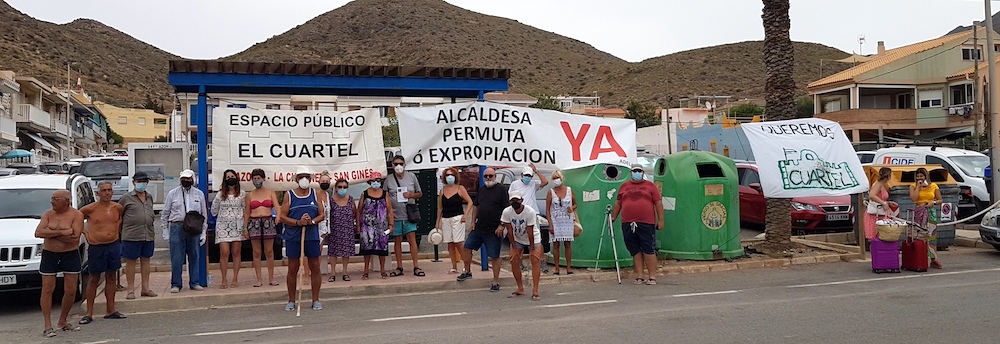 Un grupo de residentes de Isla Plana ha vuelto a concentrarse hoy para insistir, como vienen haciendo desde hace quince años, en que la antigua parcela del cuartel de la Guardia Civil sea destinado a un espacio público con biblioteca, sala de reuniones, consultorio médico y OMITA para dar servicio a este enclave cartagenero del litoral y a los núcleos de La Azohía, La Chapineta y San Ginés.