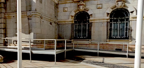 Por otro lado, la Asociación es consciente de la necesidad de accesibilidad a todo nuestro patrimonio, accesibilidad, que en esta caso, está garantizada al existir un elevador en el vestíbulo de la puerta situada en la fachada de la calle Alcalde Zamora, y por consiguiente la ilegal rampa, que afea nuestro patrimonio arquitectónico, es redundante.