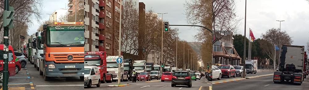 Cuarta jornada de paro indefinido en todo el país convocado por la ‘Plataforma en defensa del transporte de mercancías por carretera’, que en la Región de Murcia ha incluido caravanas pasando por las dos principales ciudades, con un sonoro avance.