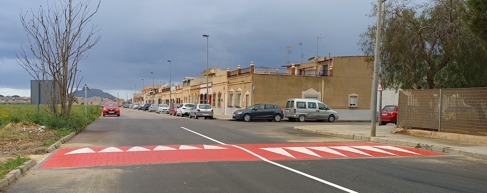 Los residentes en las viviendas de la calle Bogotá de las Casas de Pandehigo expresaban en julio de 2021 en Cartagena de Hoy su malestar por el exceso de velocidad con el que iban los vehículos cuando pasaban por esa vía, a la que también da el colegio Vicente Medina. Ahora se están instalando en dos puntos pasos de peatones elevados que obligarán a los turismos a controlar la velocidad de paso.