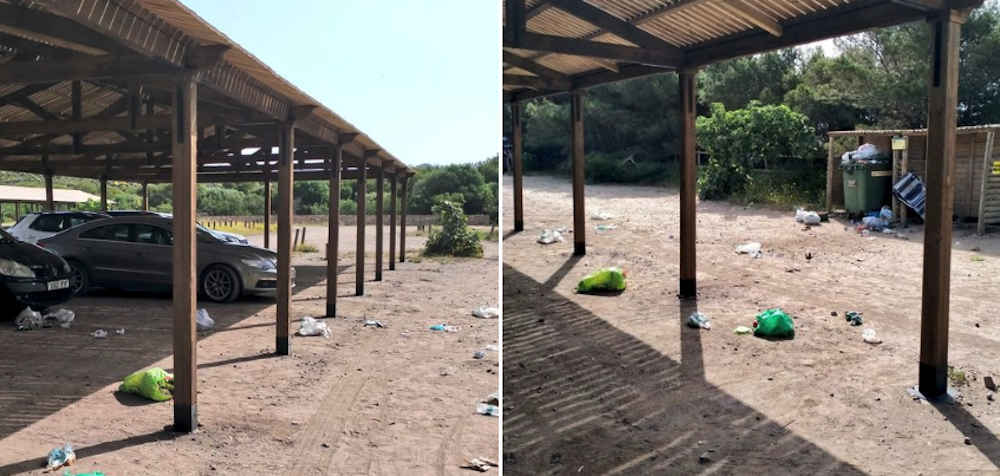 Un grupo de personas, en una actuación ajena a sus deberes ciudadanos y al respeto de las normas y a los demás, ha dejado dispersa la basura el aparcamiento público del paraje protegido de Calblanque.