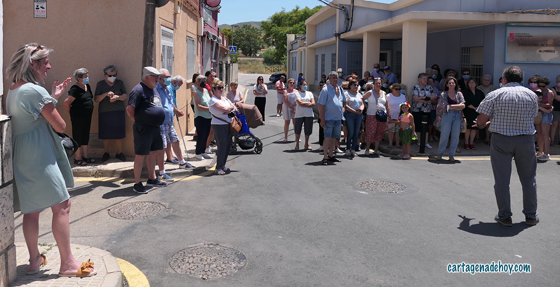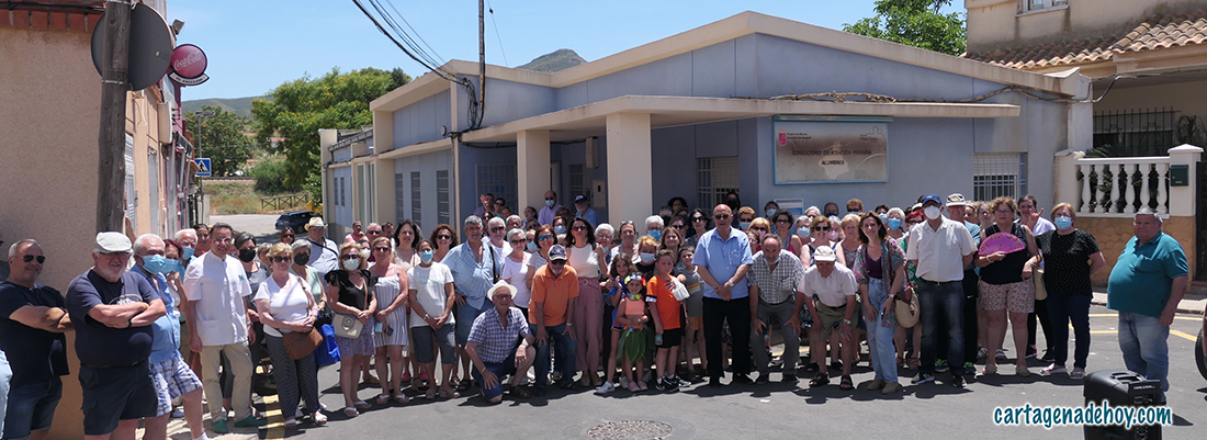 Han sido varias jornadas en las que, debido a una baja por salud del galeno titular, el consultorio de Alumbres se ha quedado sin médico para atender a los vecinos, creando los lógicos trastornos y malestar, por lo que hoy, sobre las una y cuarto de la tarde, una hora poco habitual, han sido varias decenas de residentes los que han acudido, pese al calor de las una y cuarto de la tarde, al llamamiento efectuado para solventar esta situación por Junta Vecinal Municipal y Asociación de Vecinos de Alumbres, representados por sus respectivos presidentes, Miguel Garrido y Fulgencio Andreu, siendo este último quien, a través de la megafonía se ha dirigido a los asistentes, quienes respaldan tanto las peticiones globales de una mejor atención primaria en el municipio como la demanda concreta del problema que se ha originado estos días en Alumbres. Según nos han informado, hoy ya se encontraba un médico sustituyendo al que está de baja, quien procede de otra localidad de la Región de Murcia. “Las autoridades sanitarias son las que deben prever cualquier situación para actuar de inmediato y no perjudicar a los vecinos”, remarcan, apuntando que salen a la calle ahora “antes de que la situación del personal sanitario se agrave más por la llegada del verano y para evitar sufrir otra vez este vacío”.