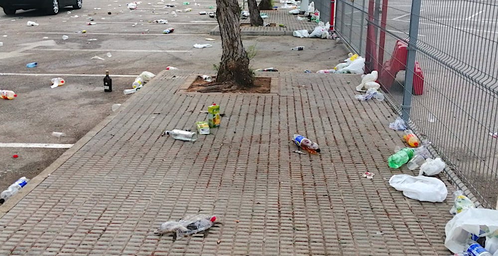 Los remitentes, en el correo electrónico enviado con fotos y vídeo que respaldan su problema, continúan diciendo que también se suceden las escenas de jóvenes de ambos secos "orinando sin pudor en el párking, en ocasiones, tirados por el suelo borrachos y en muy mal estado, alguno podría acabar en coma etílico. Los videos y fotos son el resultado de dicho botellón sobre las 7 de la mañana... y esto se repite cada fin de semana en verano. A todo ello hay que añadir de cómo queda todo este espacio. Aunque hay servicios municipales de limpieza, es una vergüenza y una malísima imagen para los clientes del centro y para el turismo".