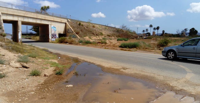 Han llegado las lluvias y los deberes sin hacer. En el momento que caen precipitaciones de una mínima intensidad sobre la ciudad, como el pasado miércoles, el agua anega la carretera del Camino del Sifón, de propiedad municipal, y la convierte en intransitable. El Partido Cantonal exige al Ayuntamiento de Cartagena que ponga en marcha, de una vez por todas, el proyecto de drenaje y construcción de canalizaciones a ambos lados de la calzada que anunciara hace un año y medio con un presupuesto de 162.450 euros y un plazo de ejecución de dos meses. En concreto, la intervención principal, que ni siquiera ha sido licitada aún, tendría lugar en el punto de menor cota de la carretera: en las inmediaciones del puente sobre el que pasa la línea férrea, muy cerca del cruce con la carretera de La Palma (RM-F37) en Las Tejeras.