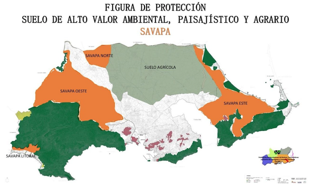 La Federación de AA. VV., Consumidores y Usuarios de Cartagena y Comarca “Fernando Garrido” propone al Ayto. de Cartagena establecer dentro de su planeamiento urbanístico la creación de la figura de Suelo de Alto Valor Ambiental, Paisajístico y Agrícola (SAVAPA), un suelo sometido a un régimen jurídico de protección frente a las amenazas de la expansión residencial, el desarrollo de grandes infraestructuras y cualquier otra que incida en la artificialización del suelo; entre las que cabe destacar la implantación de macro instalaciones de energía renovable a escala diferente al autoabastecimiento. Permitiendo en ellos una expansión pormenorizada de sus núcleos de población, fomentando la viabilidad social, económica y ecológica de su producción agraria.