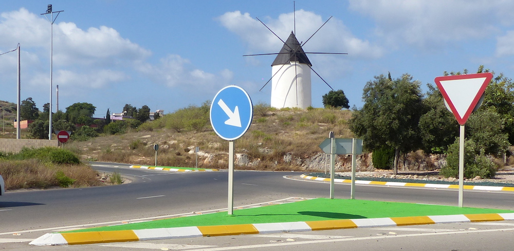 Novedad ha sido observar en la carretera de La Unión, en el tramo entre la ciudad y el Parque de Seguridad, que se han pintado de un novedoso color verde estas redondas e isletas.
