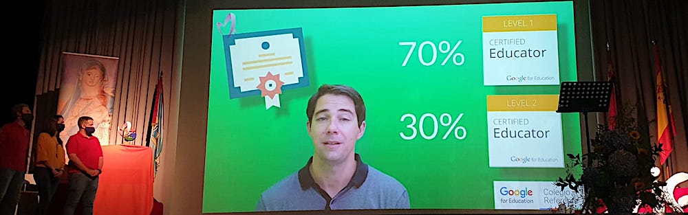 En 2019 asumimos el reto de certificarnos en las herramientas ‘Google Workspace for Education’ y este año lo hemos conseguido. Un 76% de profesores certificados en el nivel 1, un 30% en el nivel 2 y 5 miembros del claustro acreditado oficialmente como ‘Google Trainer’.