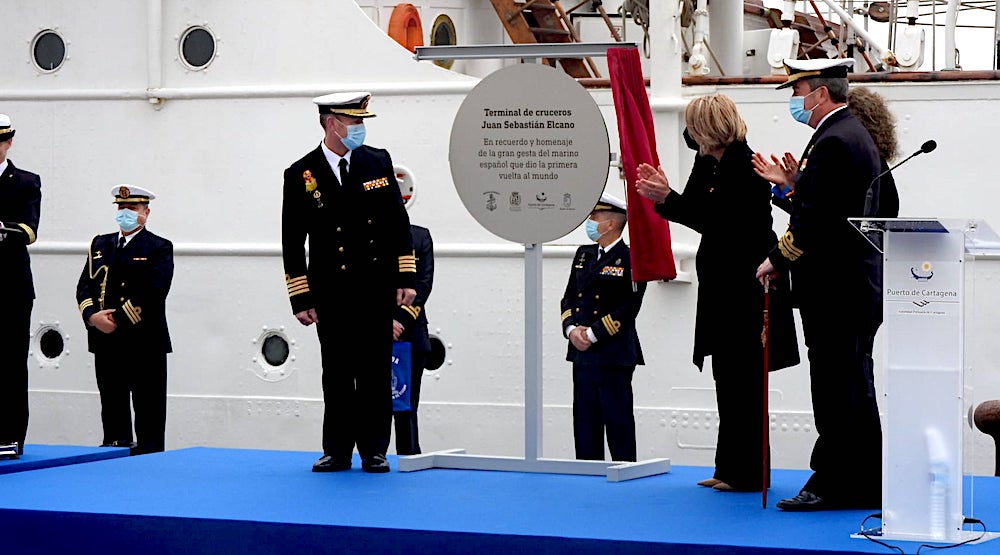 Durante el acto se ha nominado al muelle de cruceros como muelle “Juan Sebastián de Elcano” tras haberlo aprobado la junta directiva de la Autoridad Portuaria de Cartagena, previa presentación de su Presidenta, a propuesta de la Alcaldesa de Cartagena y del Almirante de Acción Marítima. Se ha descubierto una placa conmemorativa de la visita del buque escuela “Juan Sebastián de Elcano” y del nombre de la terminal de cruceros.Asimismo, tanto el Almirante de Acción Marítima como la Alcaldesa de Cartagena han dirigido unas palabras a los asistentes, tras las cuales la Alcaldesa ha entregado las llaves de la ciudad al Comandante del B.E. “Juan Sebastián de Elcano”.