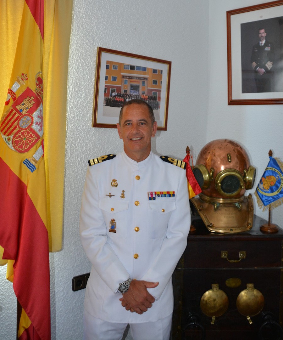 El capitán de fragata Jose María Seijo Casal, nuevo comandante del Centro de Buceo de la Armada (CBA) y Director de la Escuela Militar de Buceo (EMB). El Almirante de Acción Marítima presidió la ceremonia.