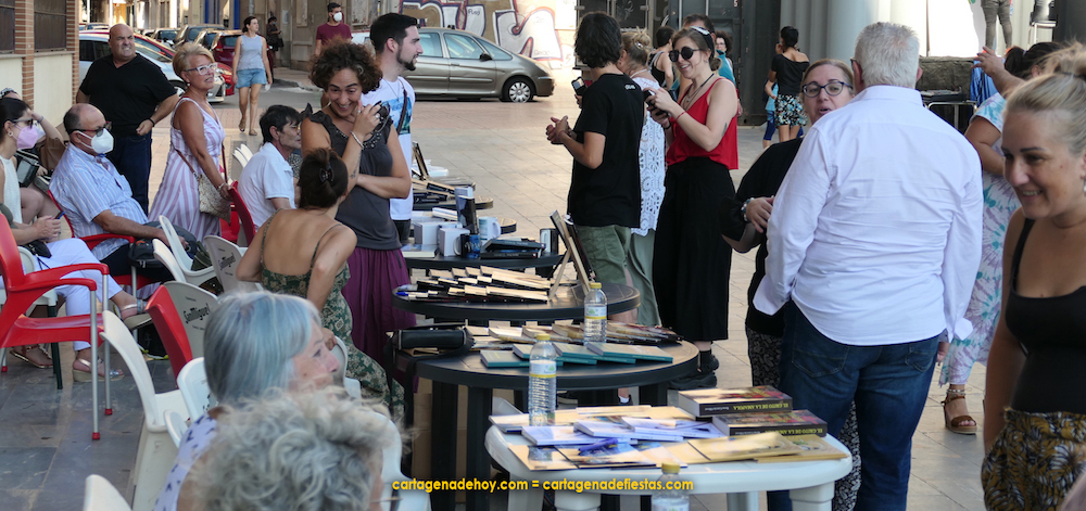 La primera actividad del programa de fiestas urbanas fue un encuentro organizado por la Asociación de Escritores de Cartagena en el recinto festero ubicado en ’la plaza de La Lonja’, con la participación de una veintena de autores de libros, que ofrecieron una exposición de obras y firma de ejemplares, además de que sirvió para entablar bastantes charlas literarias entre autores y lectores.