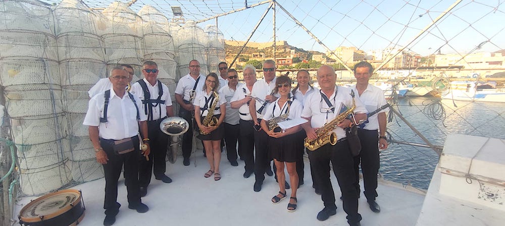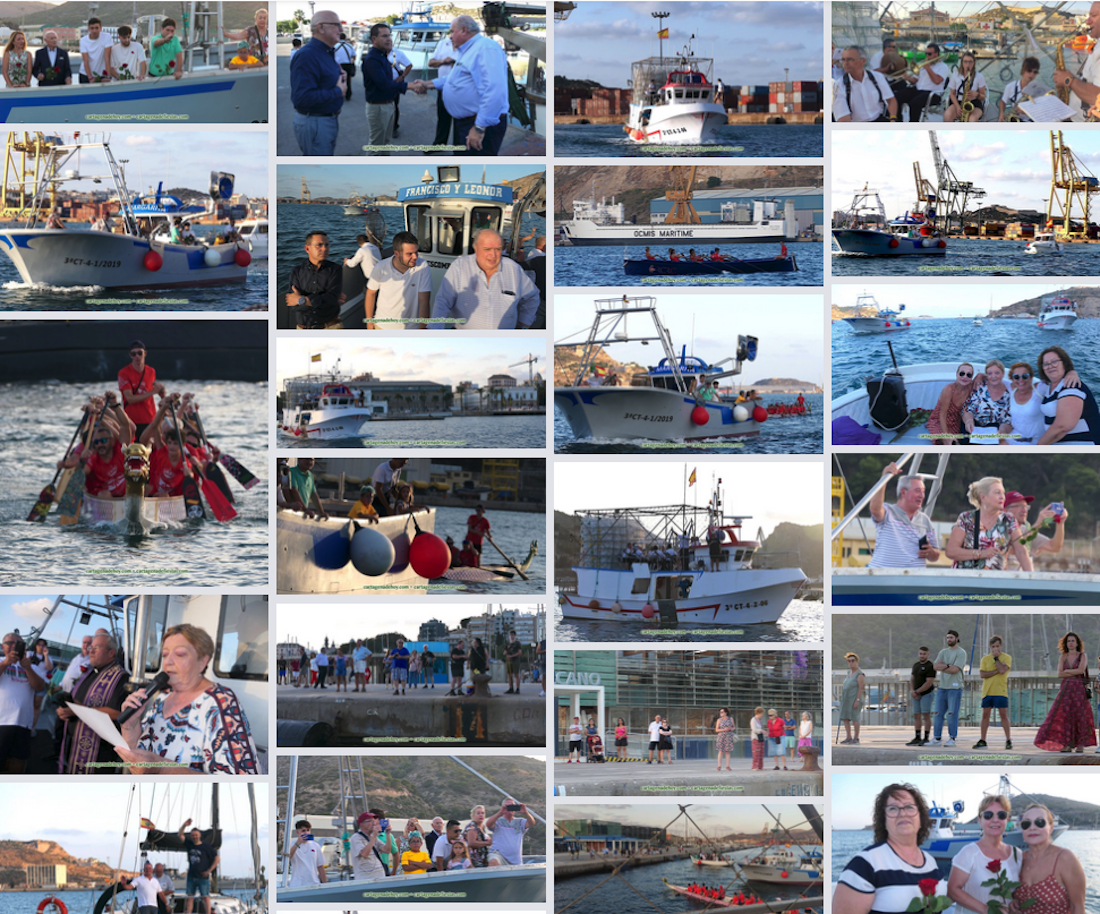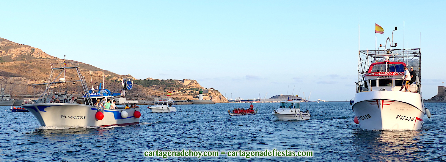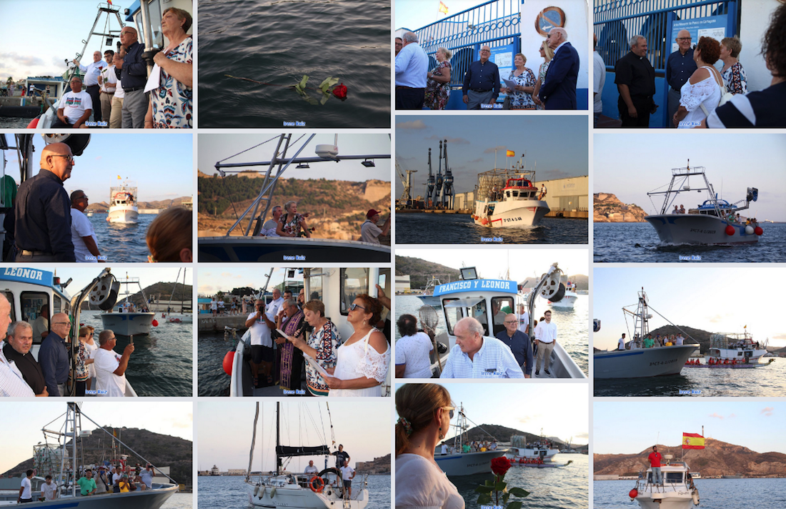 Ocho fueron las embarcaciones que participaron en el paseo marítimo conmemorativo, con cinco barcos de pescadores, un velero, una embarcación de remo y otra de dragon boat. El punto de salida fue la Cofradía de Pescadores, dirigiéndose la comitiva hacia la terminal de cruceros 'Juan Sebastián Elcano' con el acompañamiento de la agrupación musical Cartagena 1990 que, bajo la dirección de José Tudela, animó la travesía con pasodobles y charangas, dejando para momentos especiales la 'Salve marina', 'La muerte no es el final' y el himno a Cartagena.
