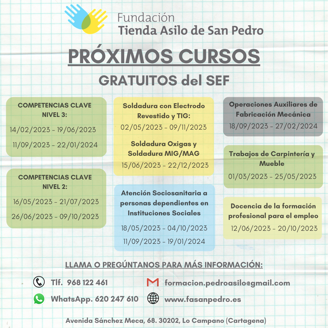 La Fundación Tienda Asilo de San Pedro, organización sin ánimo de lucro situada en Lo Campano (Cartagena), ha programado una serie de nuevos cursos para el año 2023 que son totalmente gratuitos.