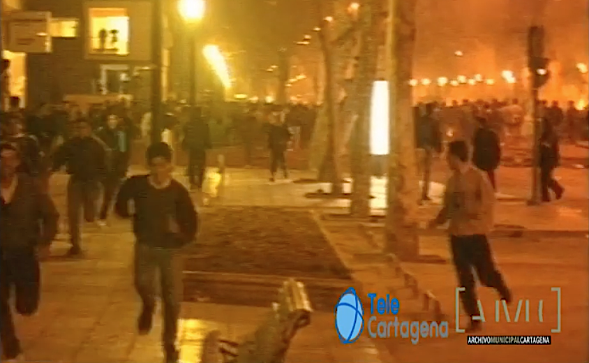 El Archivo Municipal de Cartagena ofrece una nueva grabación de Tele Cartagena del 3 de febrero de 1992, que recoge el panorama del paseo de Alfonso XIII instantes después de la quema del edificio de la Asamblea Regional (pinchar aquí).