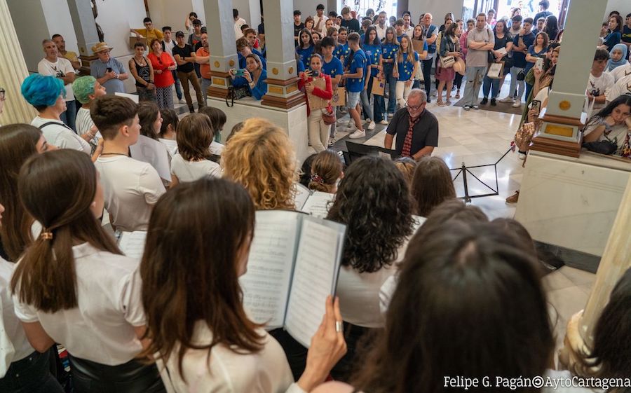 El Ayuntamiento de Cartagena se une un año más a la conmemoración del Día de Europa, una jornada que se celebra cada 9 de mayo desde 1985. Este 2023, el acto ha estado protagonizado por los alumnos de las siete Escuelas Embajadoras del Parlamento Europeo, reunidas por primera vez en Cartagena.