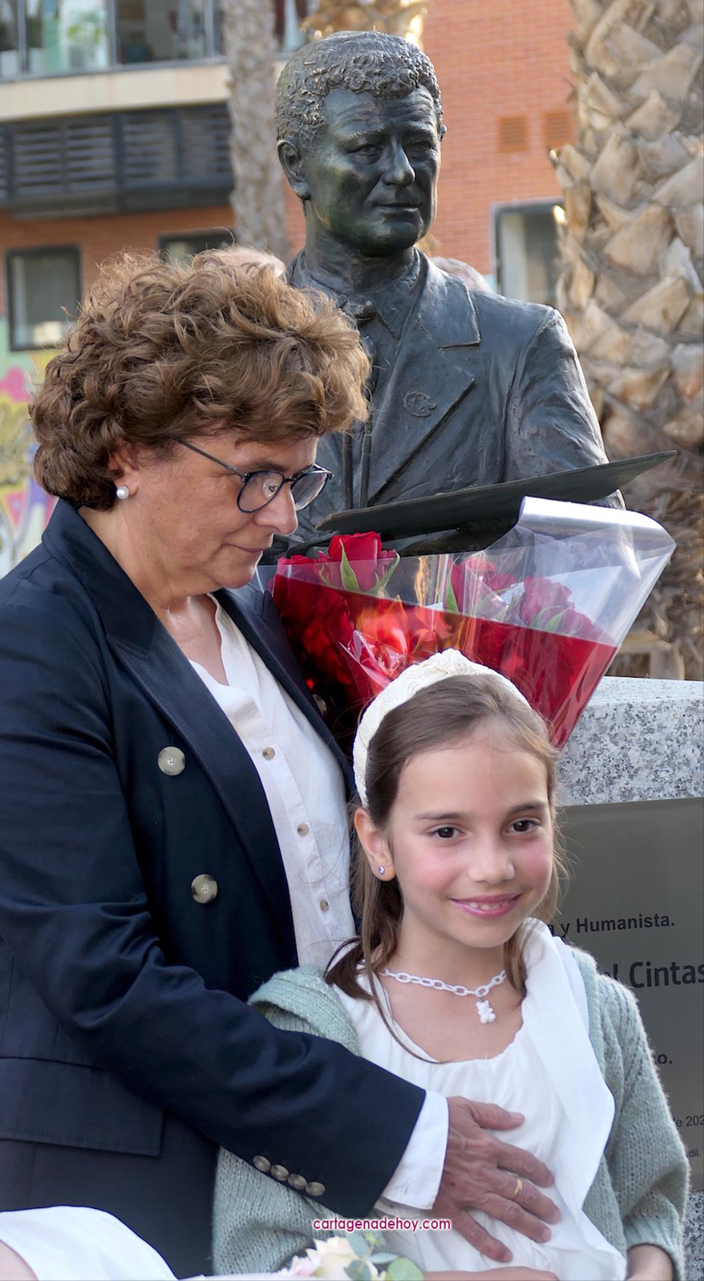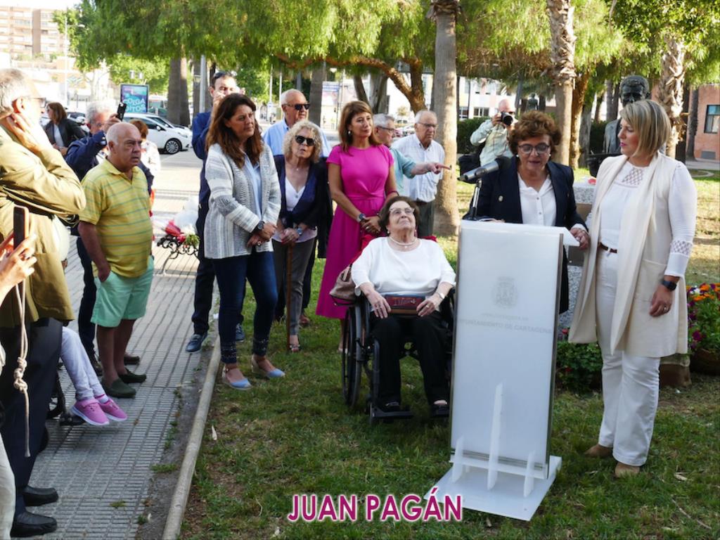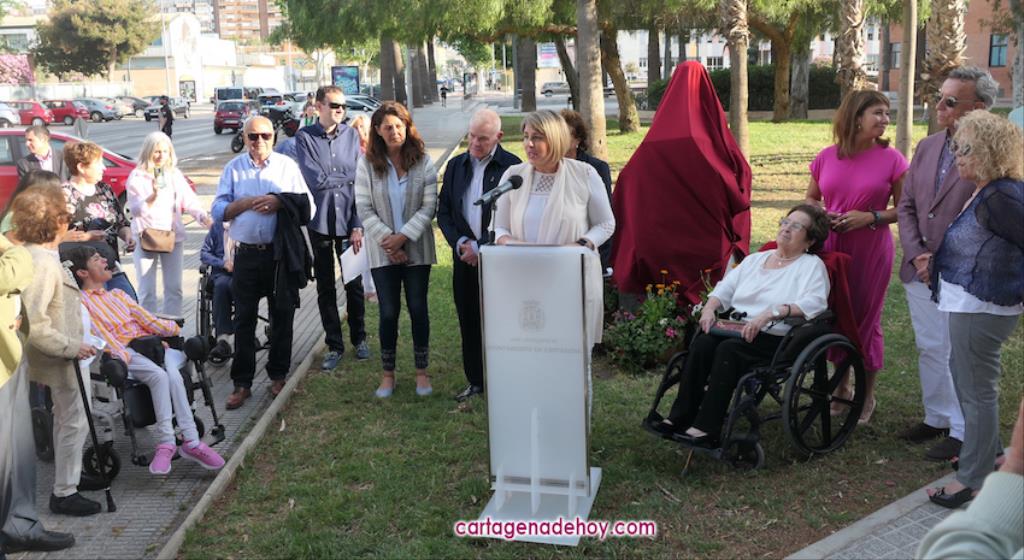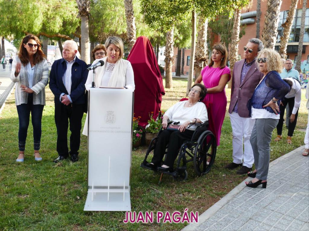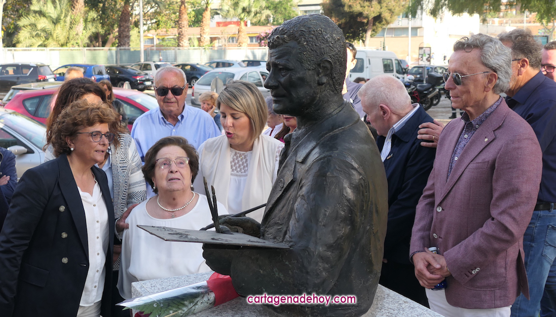 El segundo capítulo fue el descubrimiento del busto, siendo recibido con una ovación. Después fue Mariló Marín Conesa, la esposa de Juan, quien se dirigió a los asistentes, lo que ha hecho recordando una frase del Papa Juan Pablo II: "El amor me lo ha explicado todo". Explicó que decidió que el busto que encargó no fuese sólo parea su contempación, "sino para el disfrute de todos en Cartagena", resaltando el enorme cariño que sentía por esta tierra. Concluyó con una afirmación que bien resumen lo vivido esta tarde: "Ha sido una acto de amor".