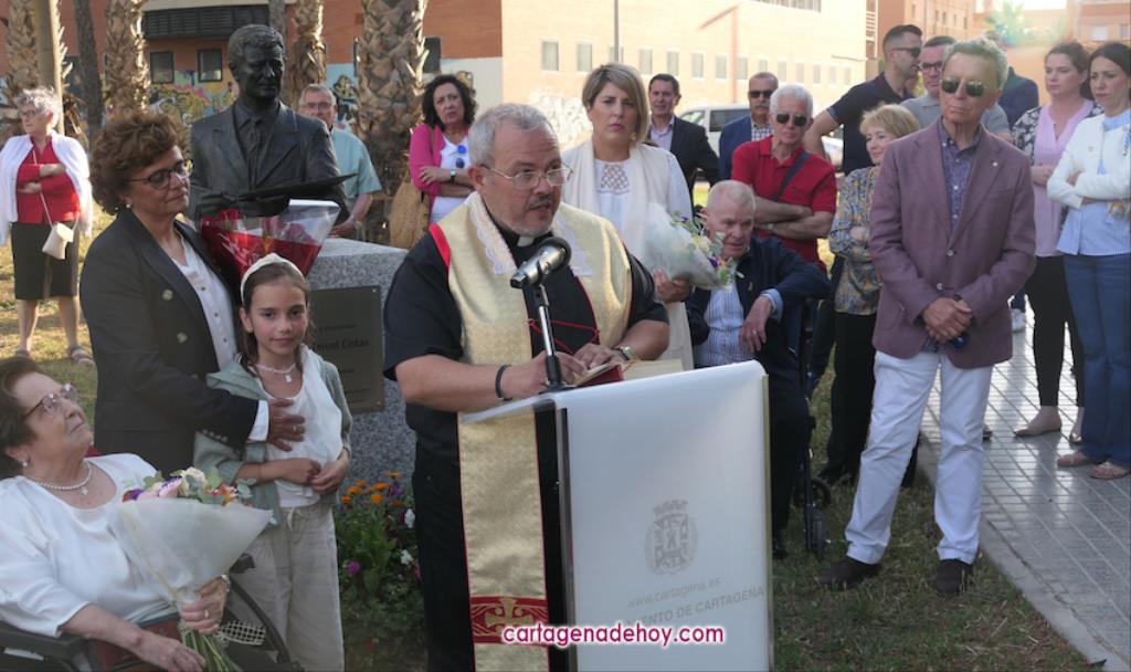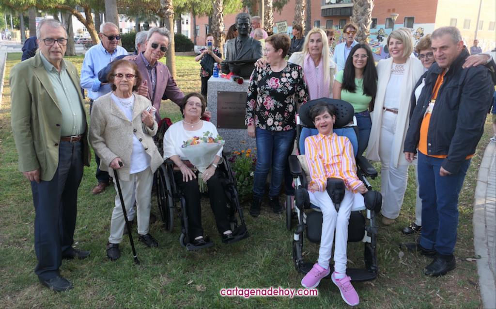 El acto, que ha congregando a una muy amplia representación de la sociedad cartagenera, ha culminado el deseo de personas muy vinculadas en cariño con Juan de la Cruz. Su esposa, Mariló Marín Conesa, fue la que encargó el busto al artista cartagenero Manuel Ardil y después se creó una comisión, de la que han formado parte Matías Barco y Tomás Martínez Pagán, entre otros, que encontraron la sensibilidad del Ayuntamiento de Cartagena para culminar con éxito el objetivo.