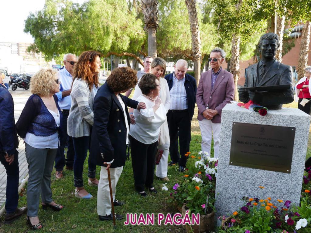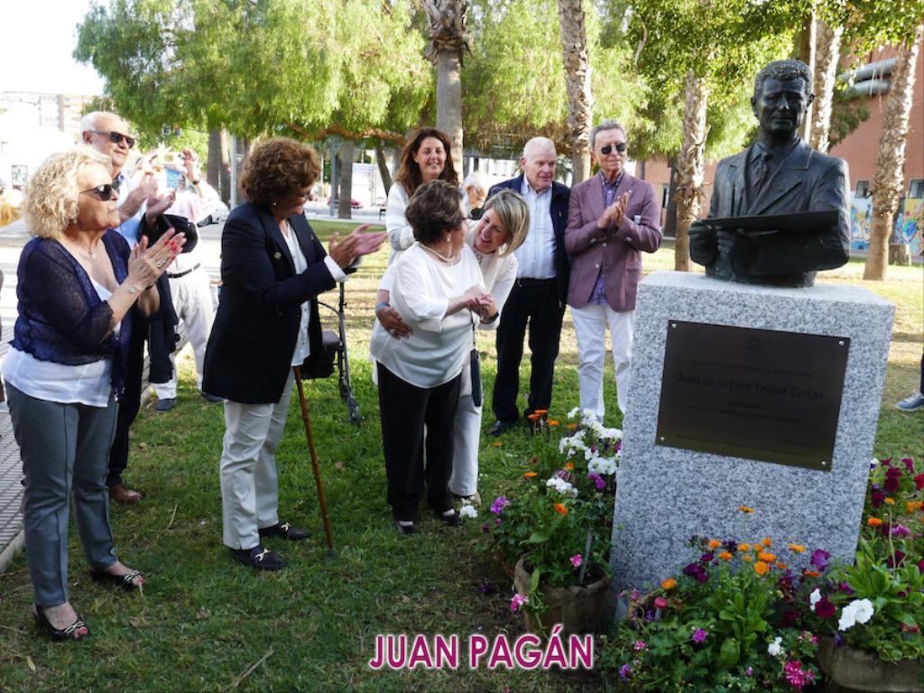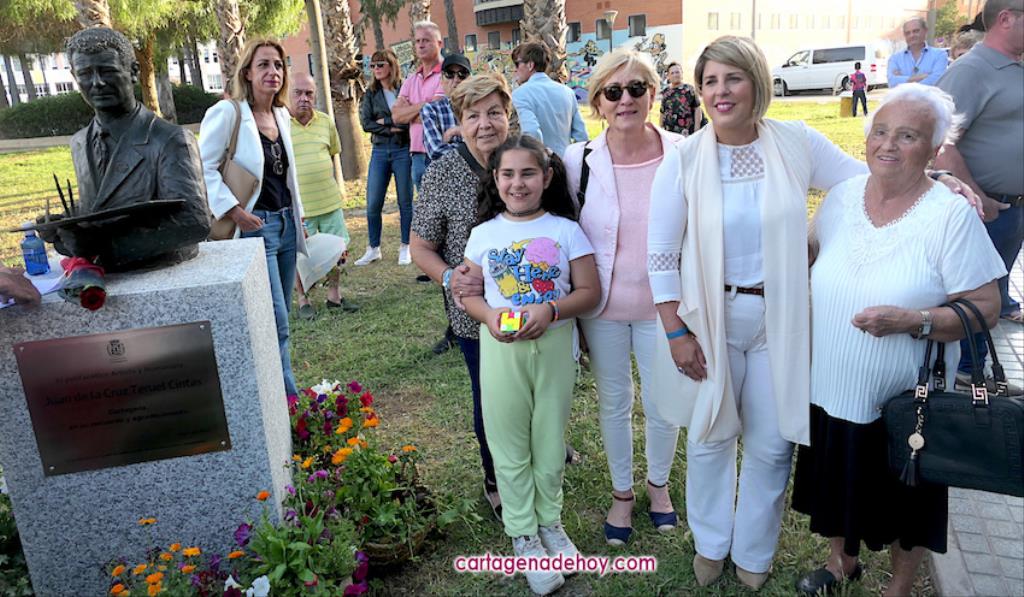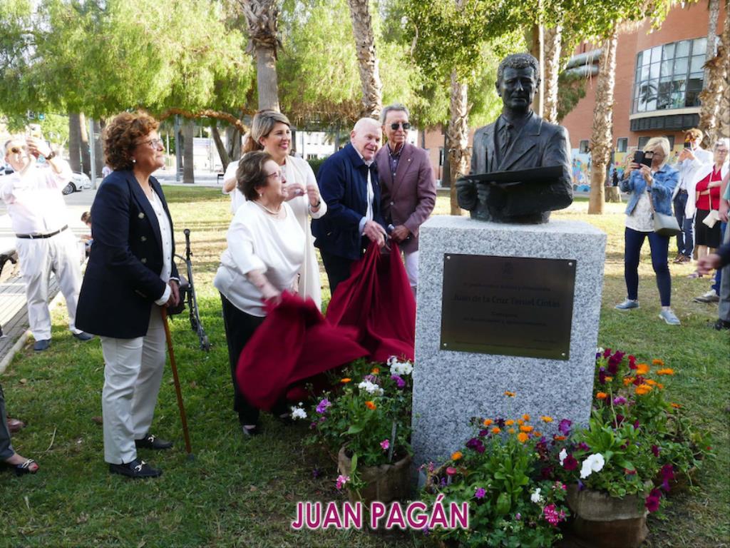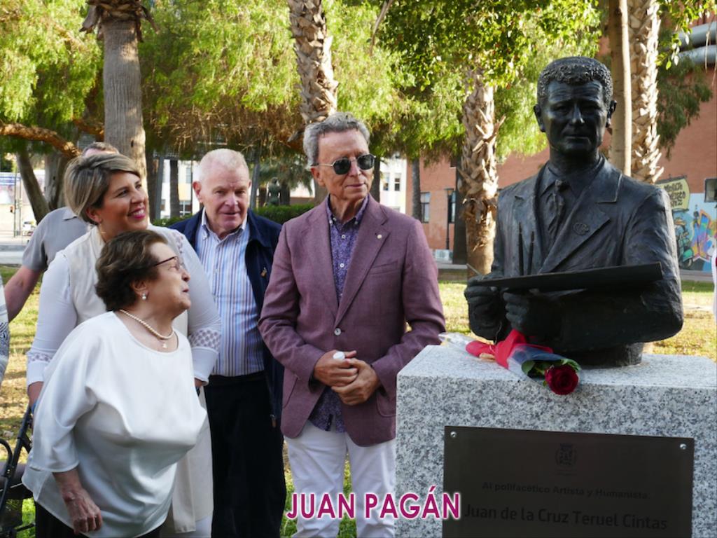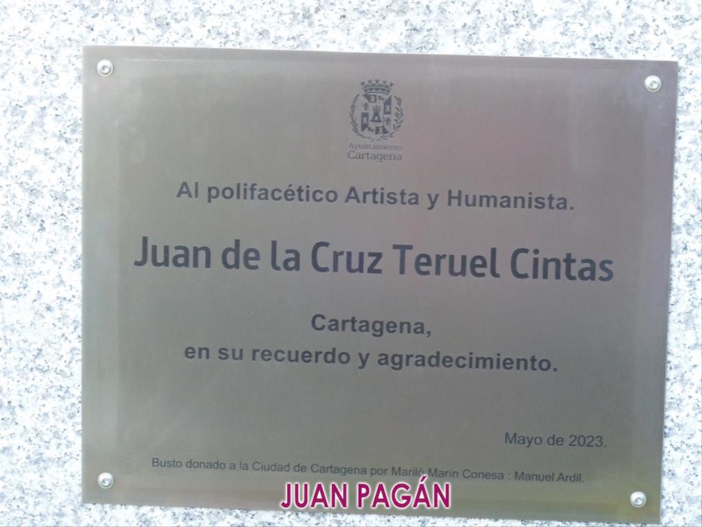 Dentro de un mes se cumplirán tres años del fallecimiento de Juan de la Cruz Teruel y Cintas, persona que ha dejado honda huella entre los que lo conocieron y cuyo recuerdo estará latente en 'su Cartagena' con el busto que ha sido inaugurado en la plaza Ortega Cano, en el lateral del centro cultural El Luzzy, cerca de la figura de Enrique Cano 'Gavira', historia del toreo cartagenero, cuya talla Juan de la Cruz creó.