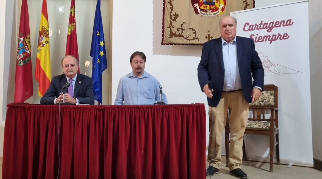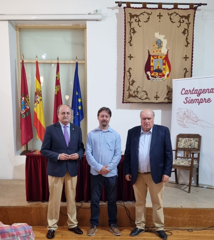 El cartagenero Santiago García, en un acto de la asociación cultural 'Cartagena siempre' que tuvo lugar en el Casino fue presentado por Tomás Martínez Pagán, habló de los relatos y leyendas que recogen sus obras publicadas sobre los camposantos de Cartagena, La Unión y Murcia.