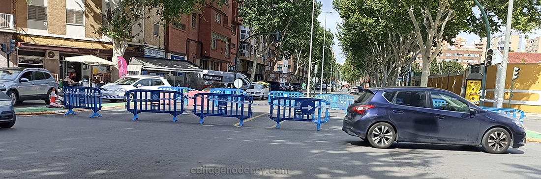El pasado fin de semana se produjo un accidente de tráfico en este cruce entre la avenida de Reina Victoria con la calle Wssell de Guimbarda en Cartagena, que supuso el derribo de una farola, que ha sido retirada del lugar. Este área quedó acotada con una cinta y los vecinos se preguntan si es por la colisión o es que se prepara la construcción de una rotonda.