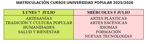 Toda la información sobre los cursos y talleres para el curso 2025/2026, el coste de la matrícula, horarios y otros datos reseñables está disponible en la web de la Universidad Popular www.up.cartagena.es