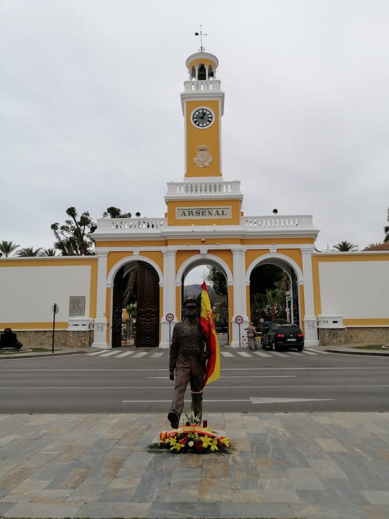 Descanse en Paz. El monumento al Infante de Marina de Cartagena, frente al Arsenal, luce nuestro homenaje al Almirante Martorell en forma de centro de flores.