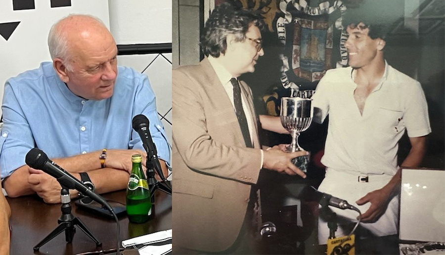 Nació en Uruguay hace 71 años, pero se afincó en Cartagena cuando fichó por el Cartagena 'Efesé' en los años ochenta del pasado siglo, siendo el futbolista extranjero que más partidos ha disputado como blanquinegro. Como entrenador ha estado en ell CD Naval, Orihuela, Las Palas, Mazarrón, Lorca, Juvenia, Cartagonova, Pinatar y Minera, entre otros. En la foto, en la tertulia de Cartagena Actualidad que tuvo lugar ayer tarde y cuando recibió el premio como mejor futbolista iberoamericano de segunda división 84/85.