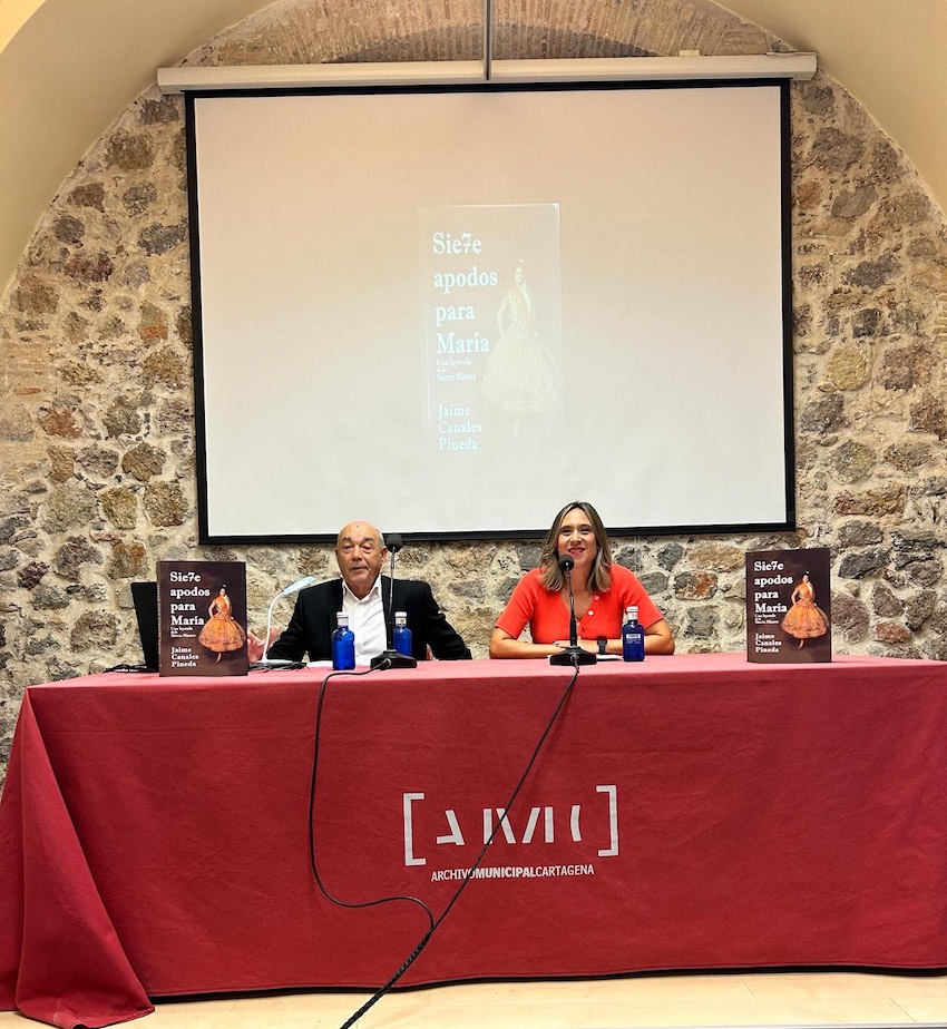 El Archivo Municipal de Cartagena ha acogido la presentación de la segunda novela del periodista Jaime Canales Pineda. Son siete novelas en una, donde el autor despliega un ejercicio de documentación y creación en un relato por una Cartagena agónica entremuros, diezmada por las epidemias y casi inhabitable, además de transitar por territorio minero y por La Unión. En la foto posa con María Sánchez-Luengo Levi, quien fue la presentadora del acto.