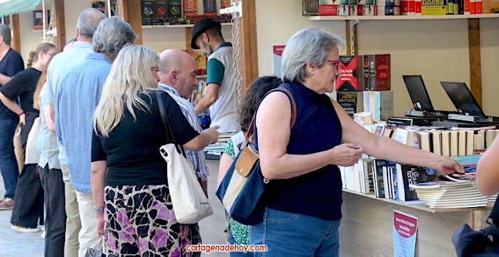 La Feria del Libro de Cartagena suma más ventas y público gracias a la nueva ubicación elegida por el Ayuntamiento en la céntrica plaza Juan XXIII. Así lo pone de manifiesto la alcaldesa, Noelia Arroyo, junto a libreros, escritores, editores y lectores. La muestra ha contado durante cuatro días con una treintena de expositores de distintos géneros, dando cabida también a autores y empresas locales. Además, ha habido actividades para todas las edades, incluyendo familias.