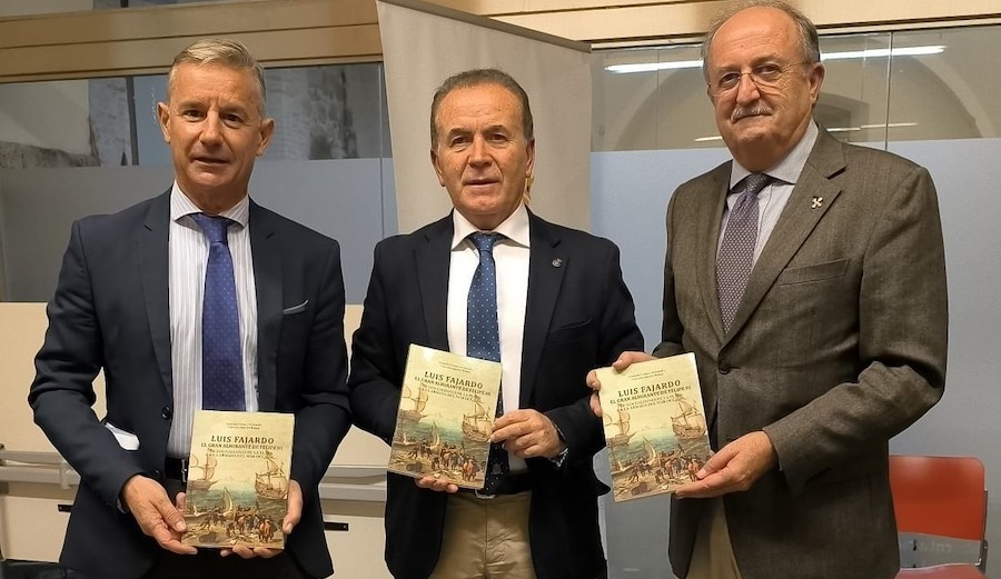 El Archivo Municipal de Cartagena ha acogido la presentación del libro 'Luis Fajardo: El gran almirante de Felipe III', un meticuloso estudio sobre la vida de este gran marino del siglo XVI realizado por Francisco Velasco Hernández, doctor en Historia Moderna y catedrático, y por Valeriano Sánchez Ramos, especialista en Historia Moderna y de América.