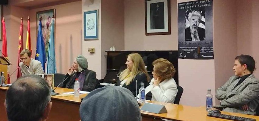 El hemiciclo de la Facultad de Letras de la Universidad de Murcia ha acogido un tributo al poeta cartagenero José María Álvarez, recientemente fallecido. En el acto, organizado por la 'Fundación amigos de la lectura', tuvo lugar una mesa redonda donde los amigos del 'Novísimo', pudieron rendir homenaje a la figura del poeta y a su amplio legado.