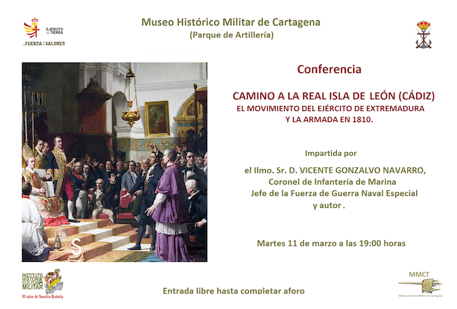 El coronel de Infantería de Marina y jefe de la Fuerza de Guerra Naval Especial hablará sobre la retirada del Ejército de Extremadura y la defensa inicial de la Isla de León (San Fernando), el 4 de febrero de 1810, con el ejército francés pisándoles los talones, que finalmente permitió conservar la soberanía nacional, al haberse trasladado la Junta Central unos días antes a esta localidad.
