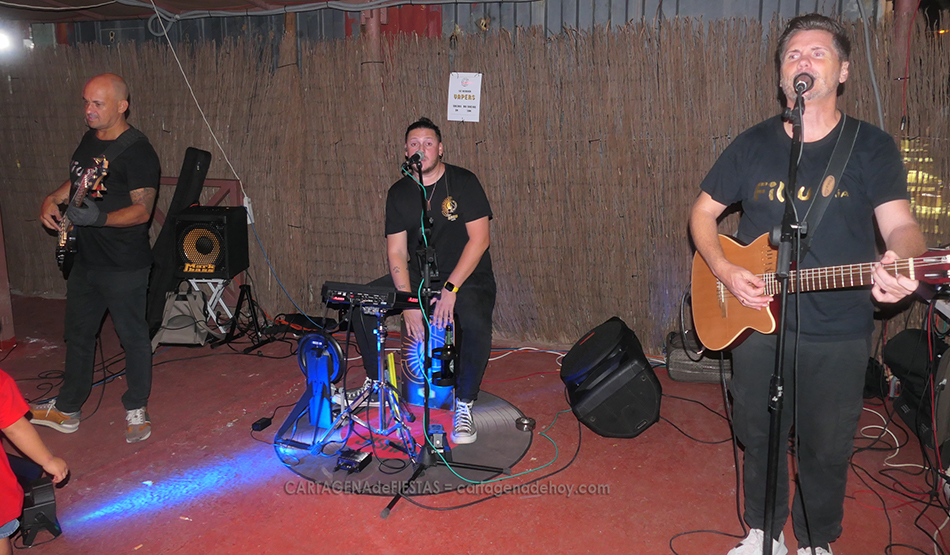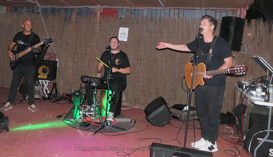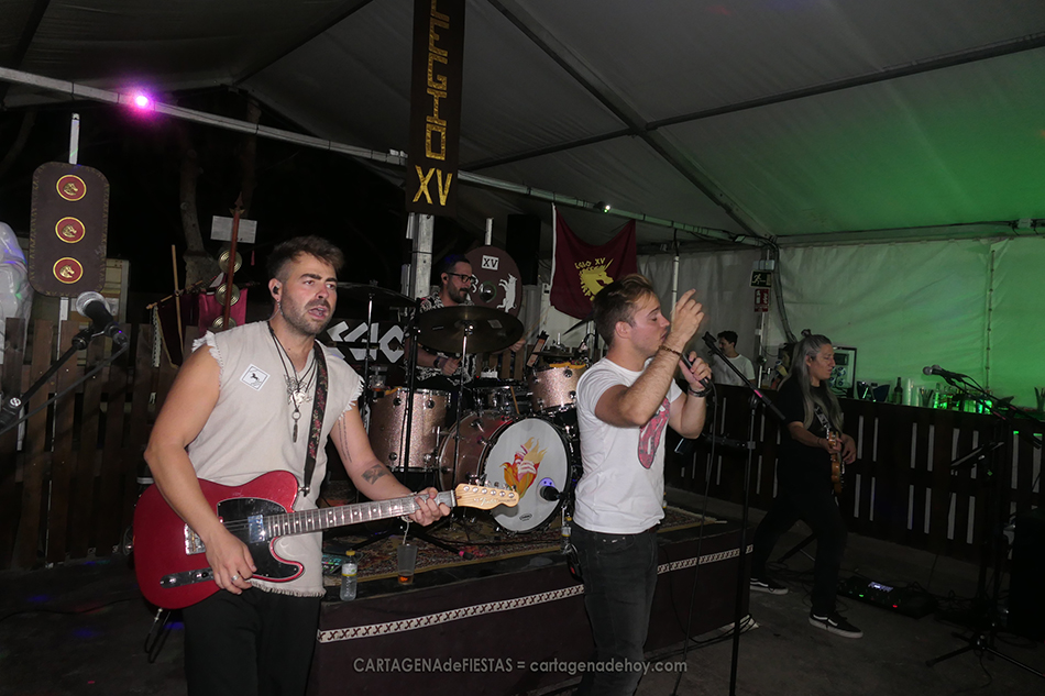 Diversas tropas y legiones de Carthagineses y Romanos ofrecen durante las fiestas actuaciones de bandas de música en directo en sus recintos del campamento, con entrada gratuita para festeros y visitantes. En la foto, el fuerte de Cayo Lelio con 'Filiú&Cía', a quien agradecemos el detalle que adaptase su estribillo para elogiar la labor de Cartagena de Hoy.
