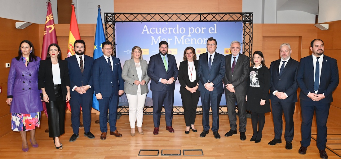 El protocolo fue suscrito por el propio López Miras; la vicepresidenta tercera del Gobierno central y ministra para la Transición Ecológica y el Reto Demográfico, Teresa Ribera; y los alcaldes de Murcia, Cartagena, Torre-Pacheco, Mazarrón, San Javier, San Pedro del Pinatar, La Unión, Los Alcázares, Fuente Álamo de Murcia y Alhama de Murcia.