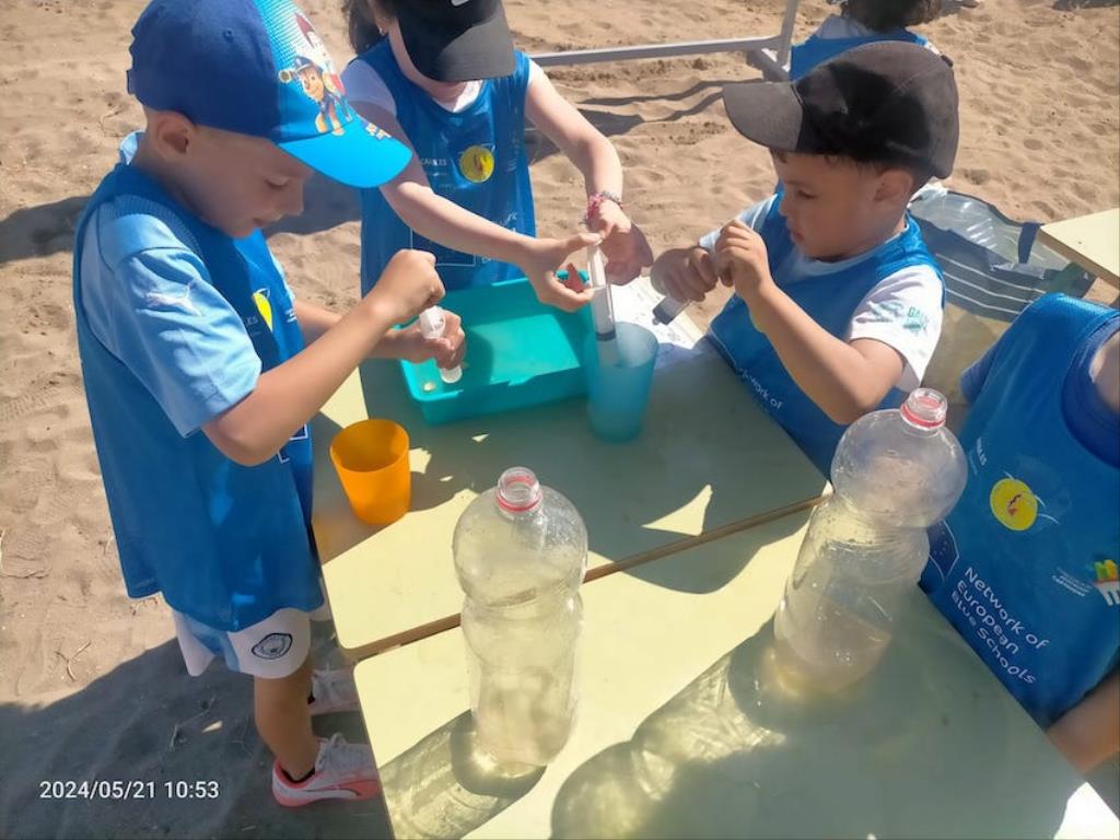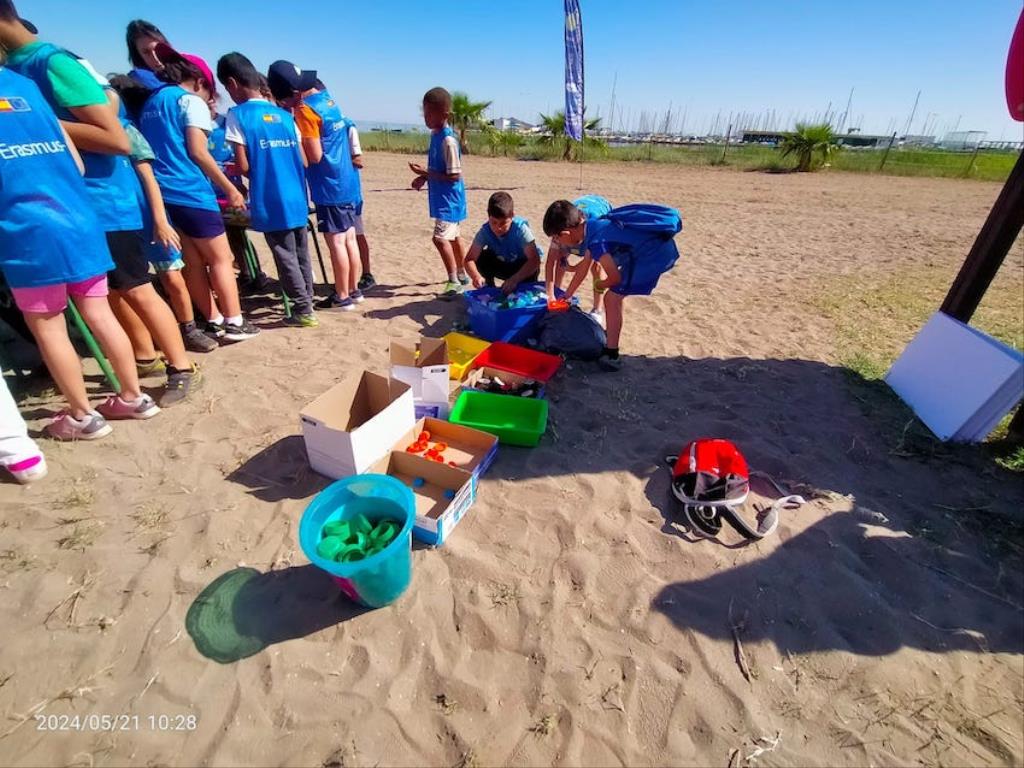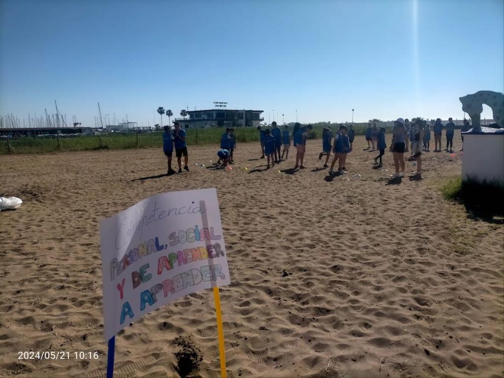 Los alumnos del CEIP Félix Rodríguez de la Fuente han vuelto a montar las aulas hoy en la playa y ahora centran su atención en las ‘olimpiadas’ que celebrarán este viernes después de que el fuego sagrado llegue en barco procedente de Cartagena, tras haber sido encendido en el Teatro Romano.