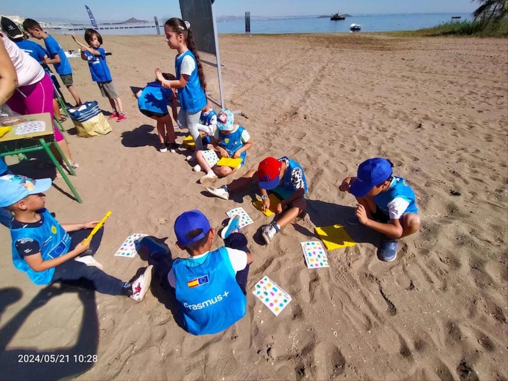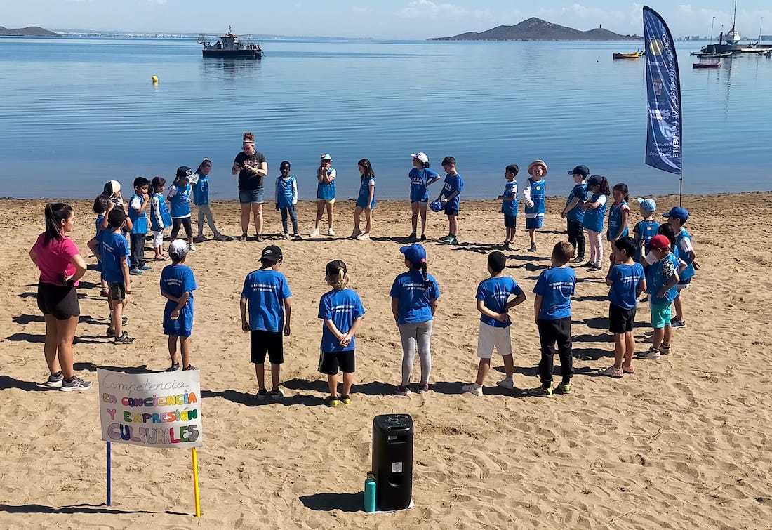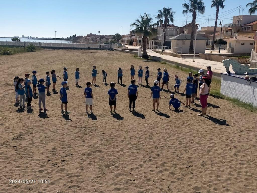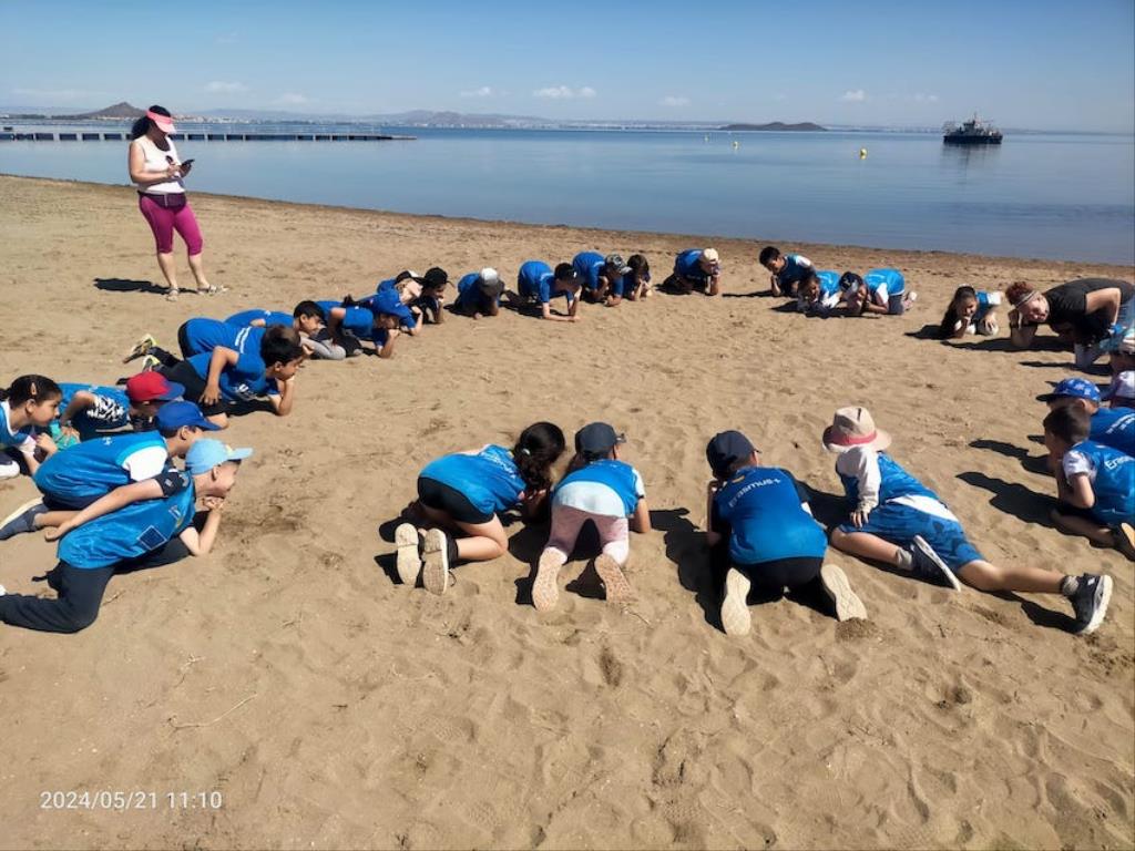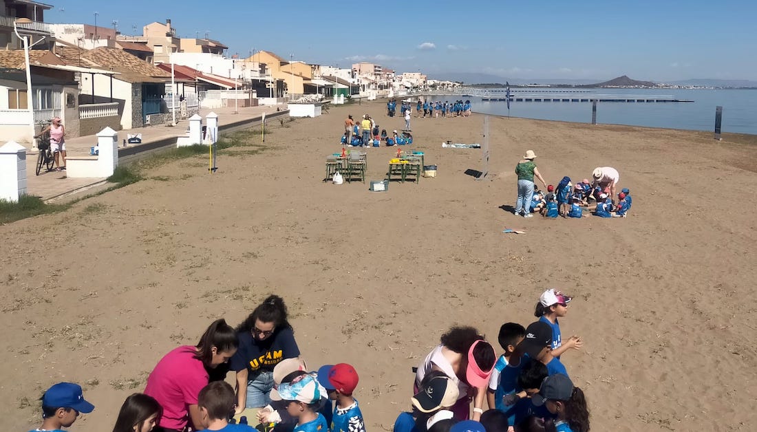 El colegio del castizo pueblo marmenorense traspasó fronteras hace unos años cuando sacó las clases a la playa, lo que ha sido positivo para los alumnos y ha generado distinciones para el centro. Este martes, nuevamente, el aula móvil se ha colocado junto al Mar Menor.