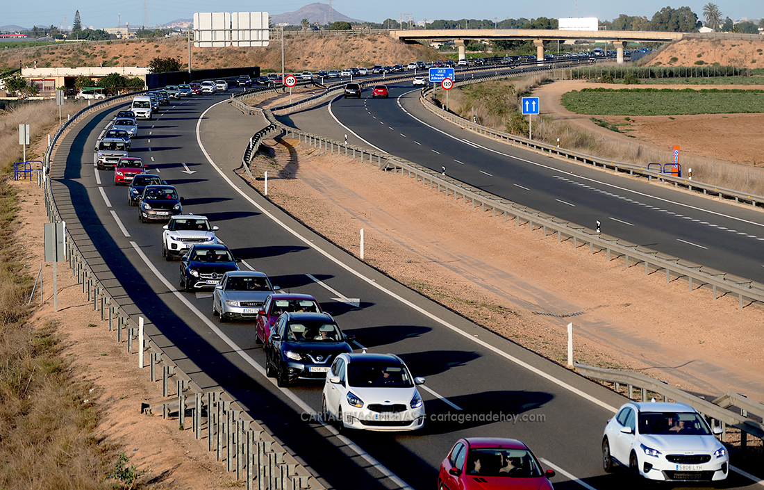 La mejor prueba es que han vuelto las colas de los fines de semana en lugares habituales de época estival, como es la entrada por la vía rápida hacia Cabo de Palos y La Manga del Mar Menor por la mañana y en la salida por la tarde, además del desvío hacia Murcia en la AP7.