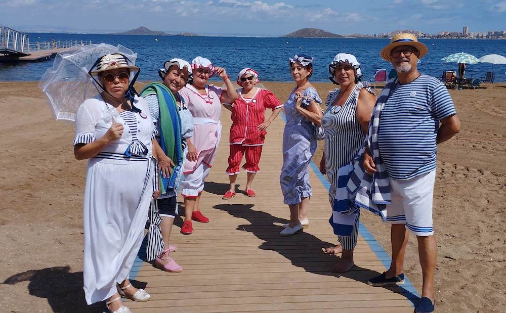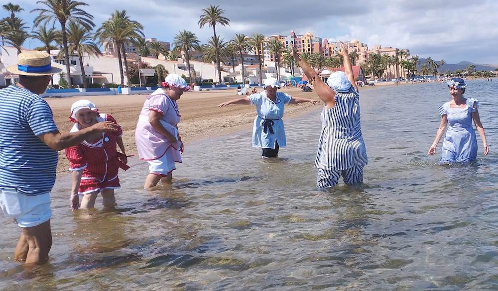 La Asociación de Mujeres Carmesí sorprendió hace unas fechas al resto de veraneantes que se encontraban en ese momento en el Mar Menor dándose un remojón con atuendos propios de hace un siglo.