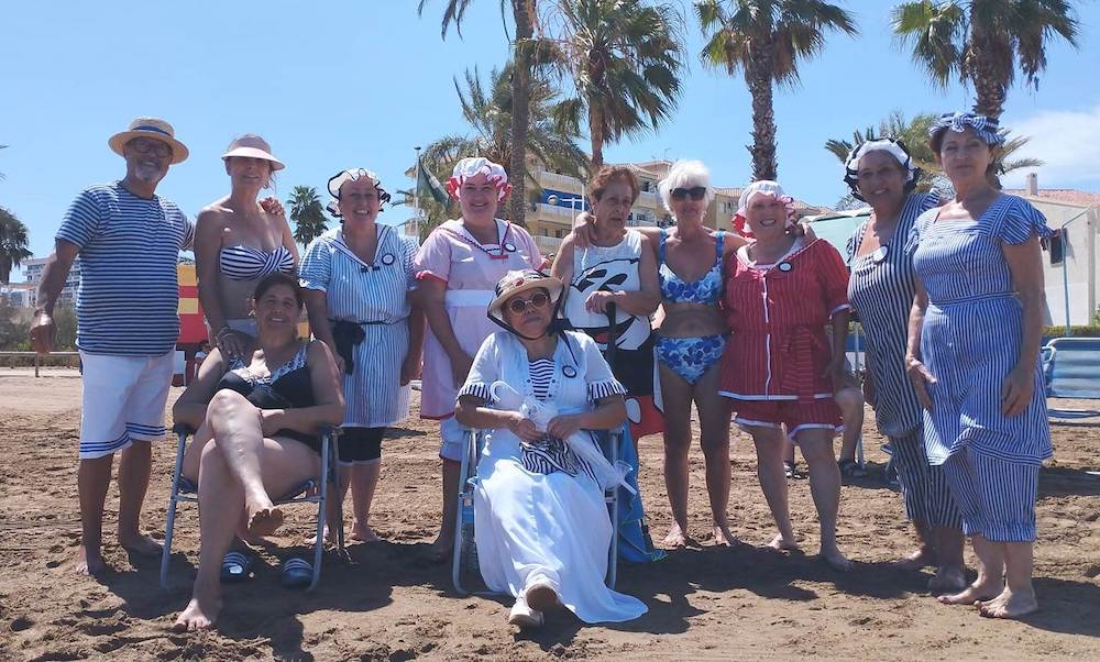 Después del chapuzón inicial, han realizado juegos modernistas en la arena y los veraneantes se han acercado para interesarse por la asociación y hacerse fotos con ellas. Finalmente, han concluido el encuentro celebrando una comida de hermandad.